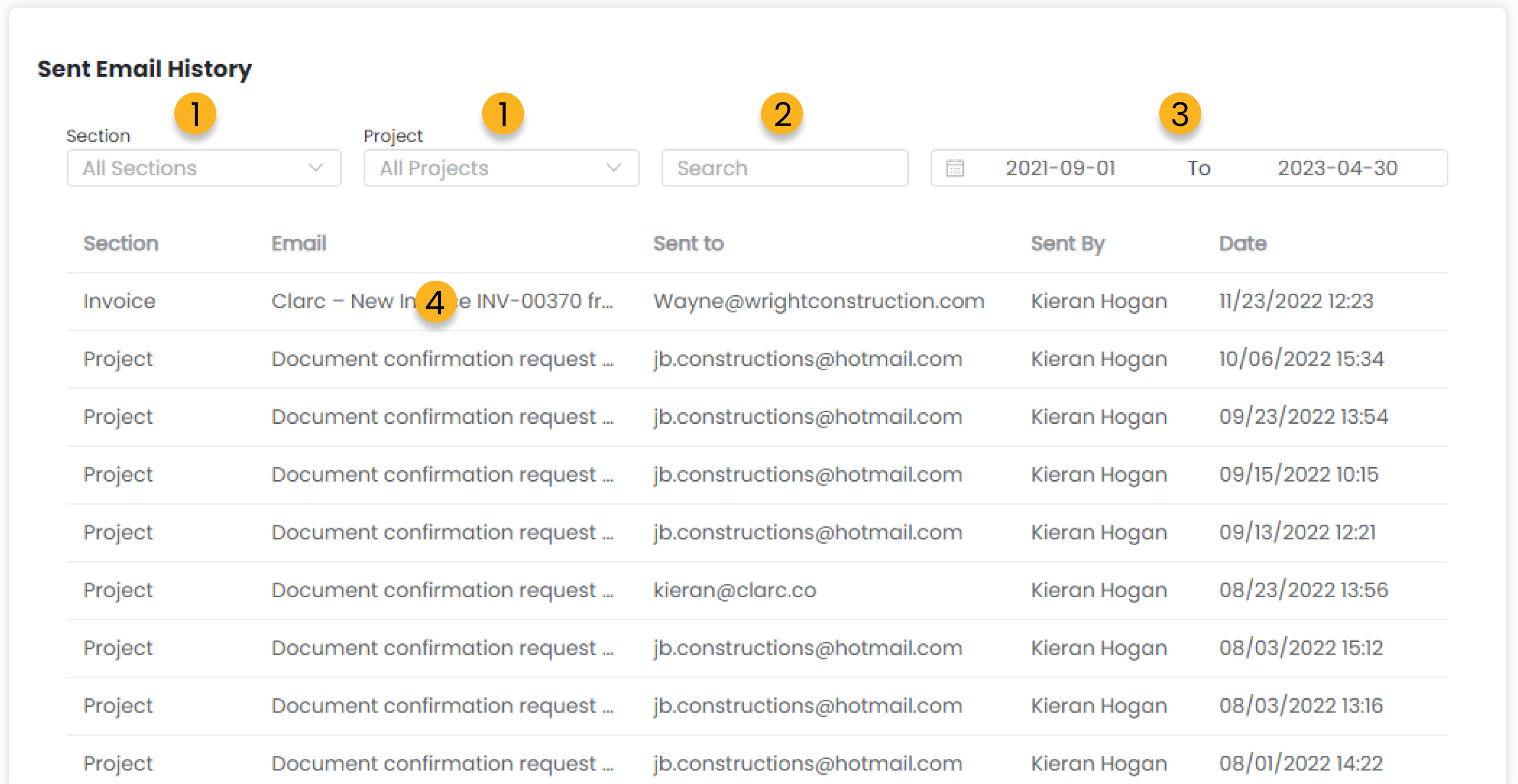 4. View the history of sent time entry reports so you know whats been sent from your Clarc account.